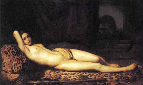 Nude girl on panther skin, artist unknown.