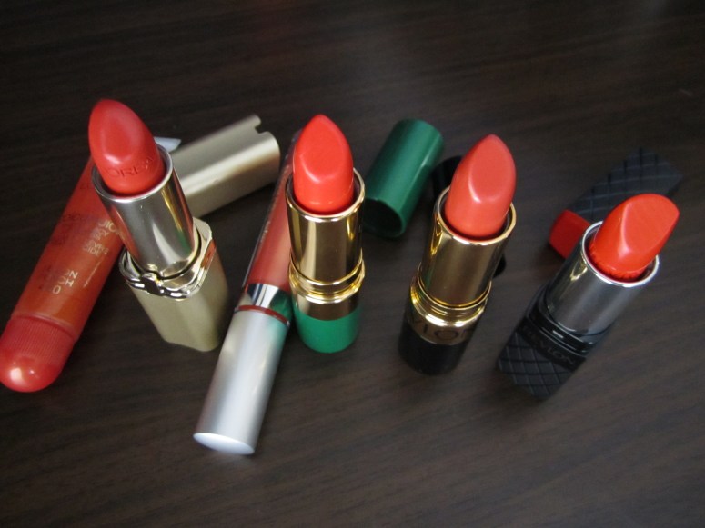 I’ve consulted the March issues of Vogue and of Marie Claire, and strangely, I’m not seeing a whole lotta orange. Ok, so I’m not in sync with the current trends—no big surprise there! However, I’m totally smitten with Orange; specifically, orange lipsticks.