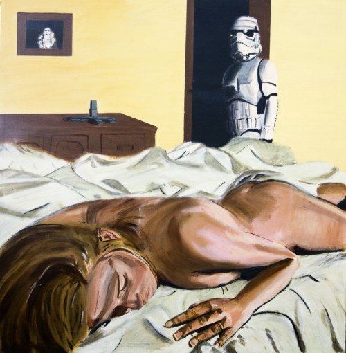 When I first saw this painting, it shook me up a little to see my pet insecurity captured so effortlessly in the bold strokes of paint on canvas. It speaks to a fear anyone in a relationship has likely known, and is summarized simply: “Am I interchangeable?” Who is under that white suit, and does the lover know— or care?